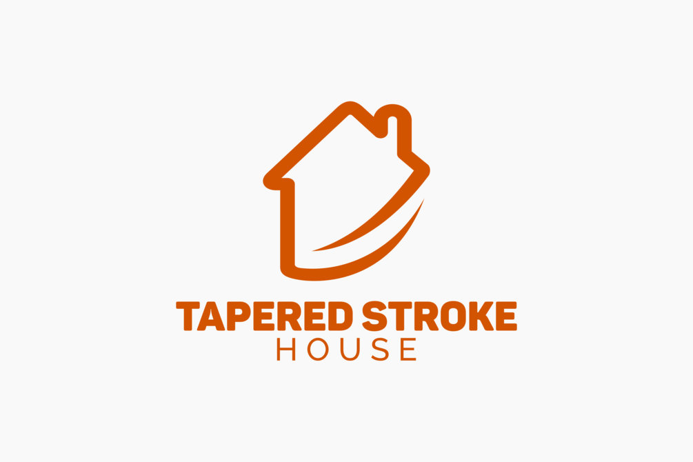 A logo design featuring a house created from a single line with tapered strokes at both ends.